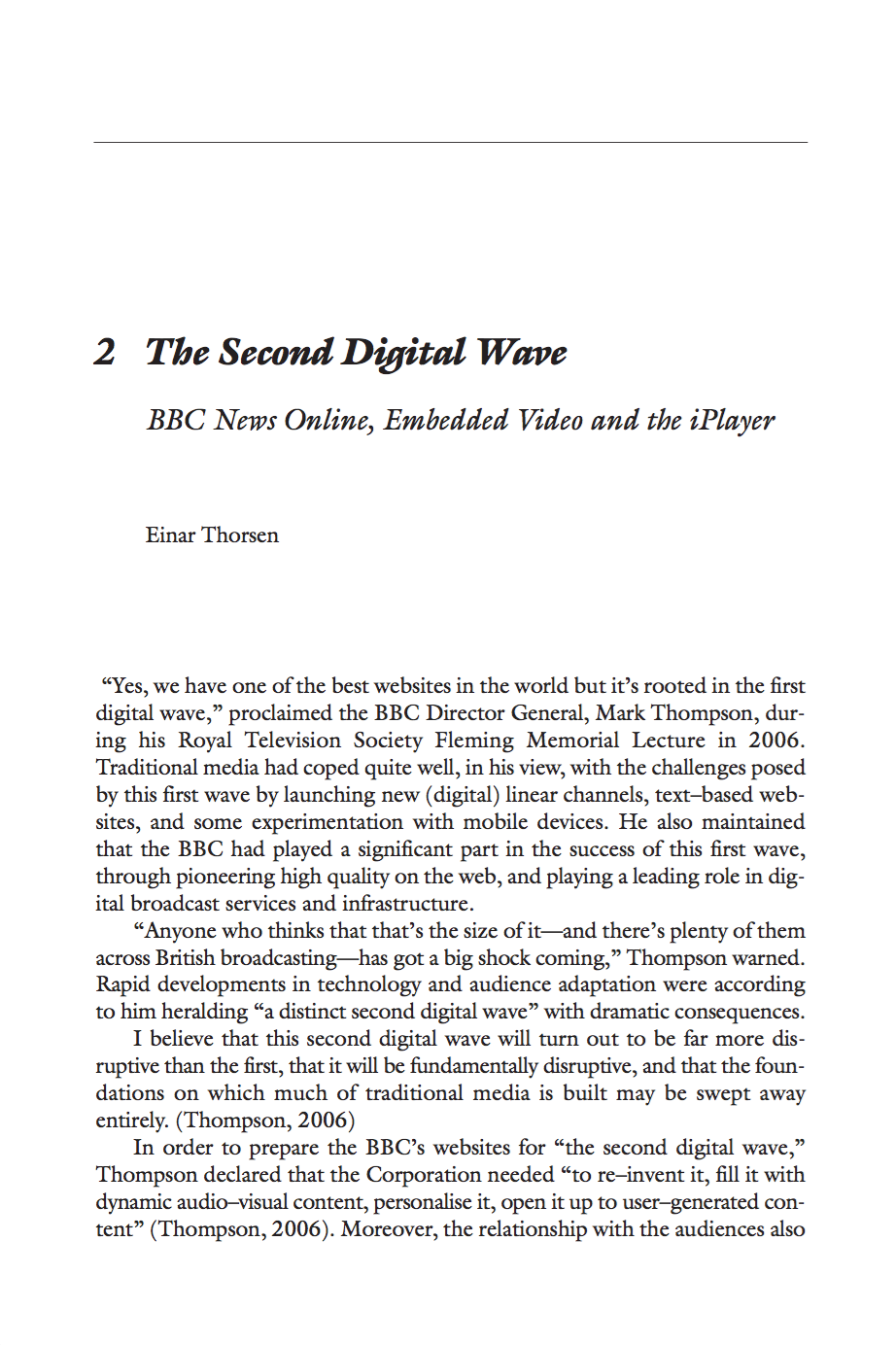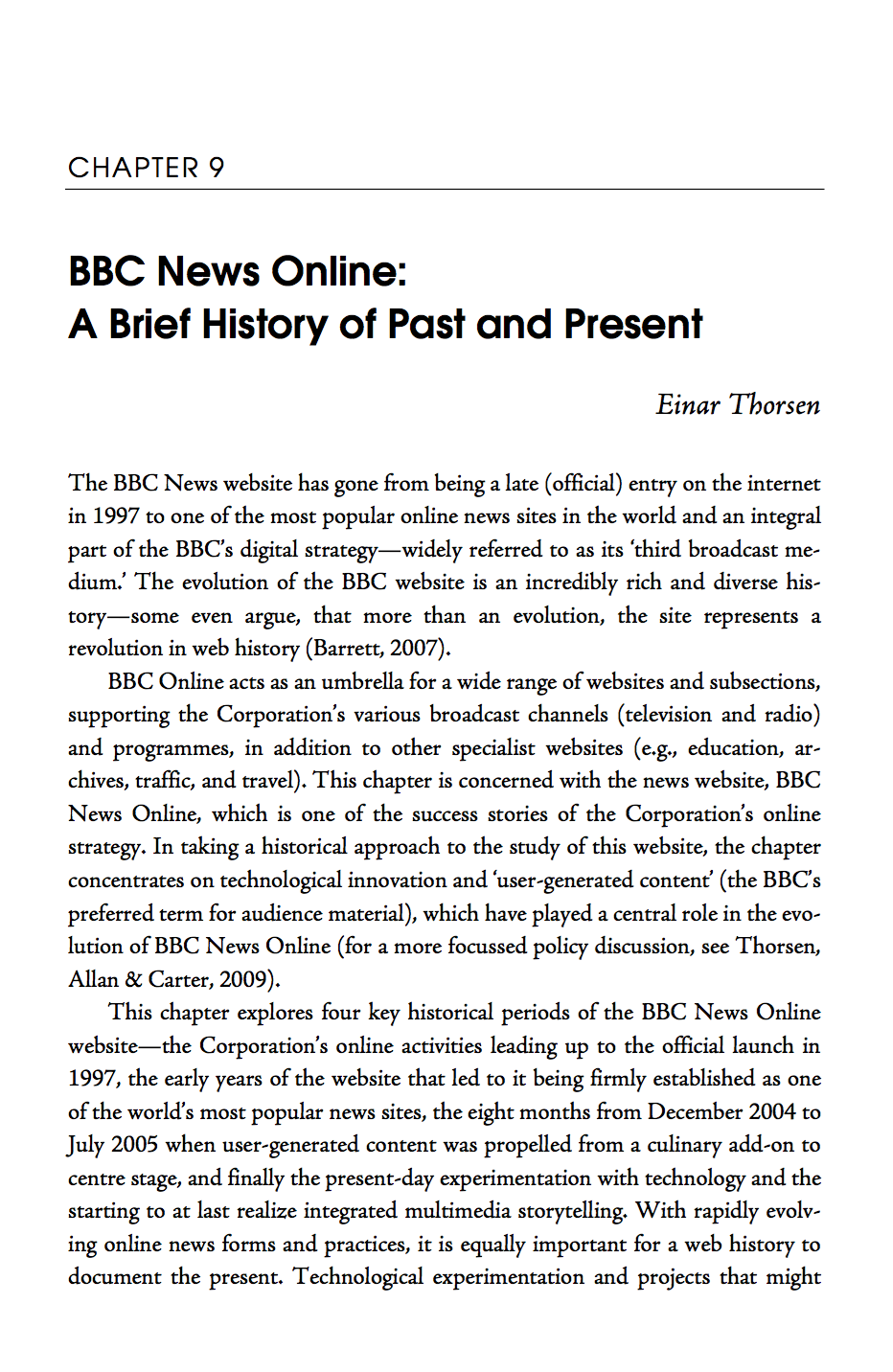 Thorsen, E. (2010) ‘BBC News Online: A Brief History of Past and Present‘, in Brügger, N. (ed) Web History, Peter Lang: New York [Publisher | WorldCat | Amazon UK | Amazon US] |