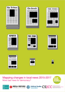 Ramsay, G. N., Freedman, D., Jackson, D., and Thorsen, E. (2017) Mapping changes in local news 2015-2017: More bad news for democracy?, by Centre for the Study of Journalism, Culture and Community, Bournemouth University []