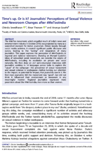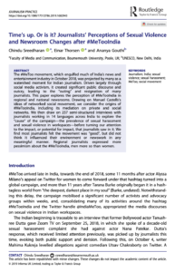 Sreedharan, C., Thorsen, E. and Gouthi, A., 2020. Time’s up. Or is it? Journalists’ Perceptions of Sexual Violence and Newsroom Changes after #MeTooIndia. Journalism Practice, 14 (2), 132-149.DOI: