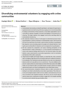 Winch K, Stafford R, Gillingham P, Thorsen E, Diaz A. 2021. Diversifying environmental volunteers by engaging with online communities. People and Nature, 3(1): 17–31. DOI: