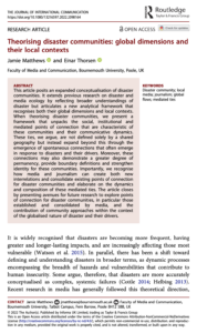 Matthews, J. and Thorsen, E. (2022) ‘Theorising Disaster Communities: Global Dimensions and their Local Contexts‘, Journal of International Communication. DOI: